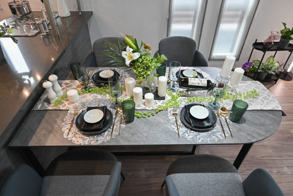 モダンかつ華やかさを感じるテーブルコーディネートに仕上げました。