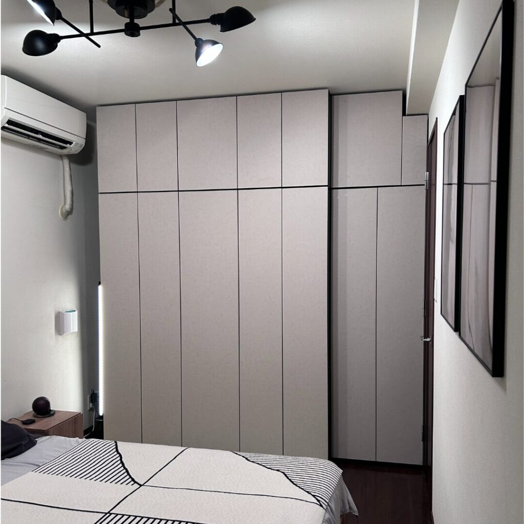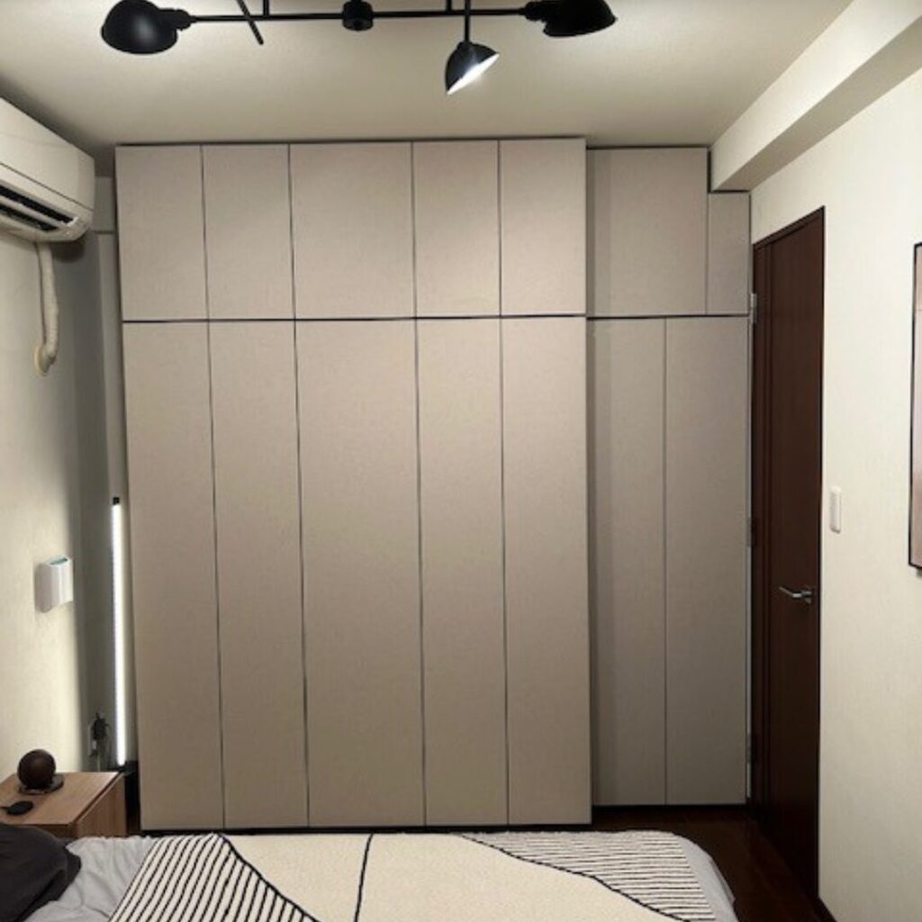 今回の造作壁収納は、内装材と扉材の2種類のマテリアルで構成されており、