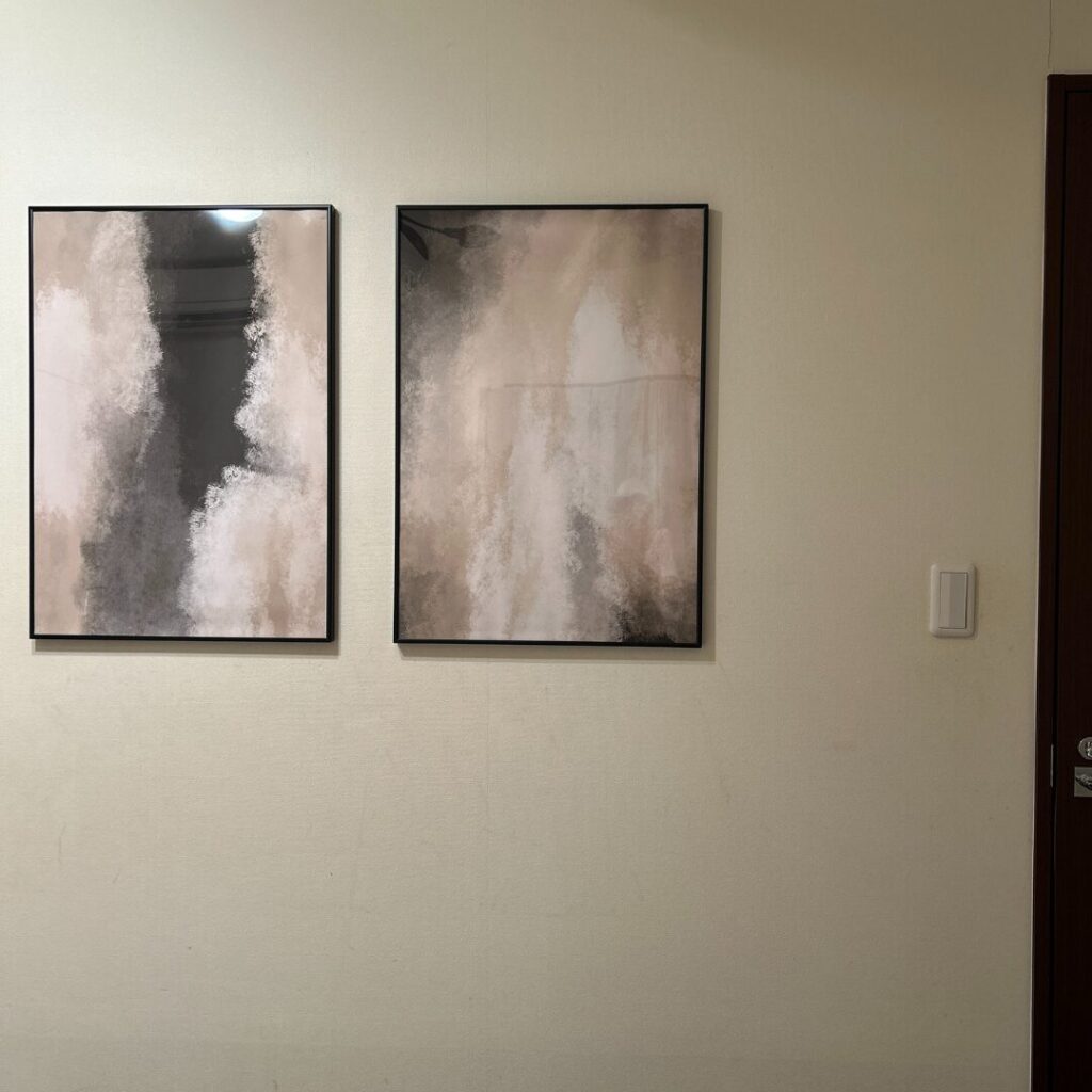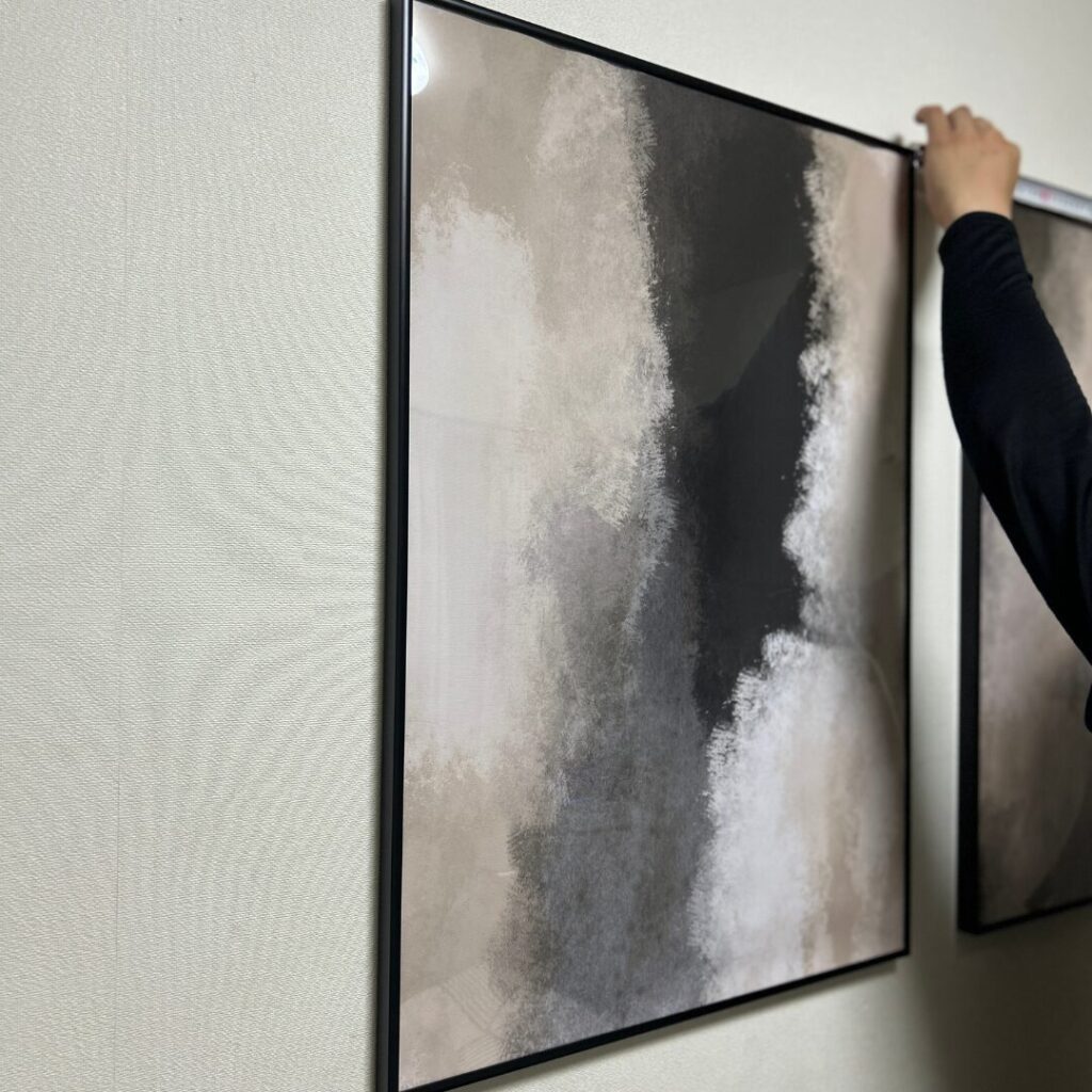 お客様のお好みに合わせ、寝室のアクセントとなるアートには、思い切りのある大胆なものを選びました。