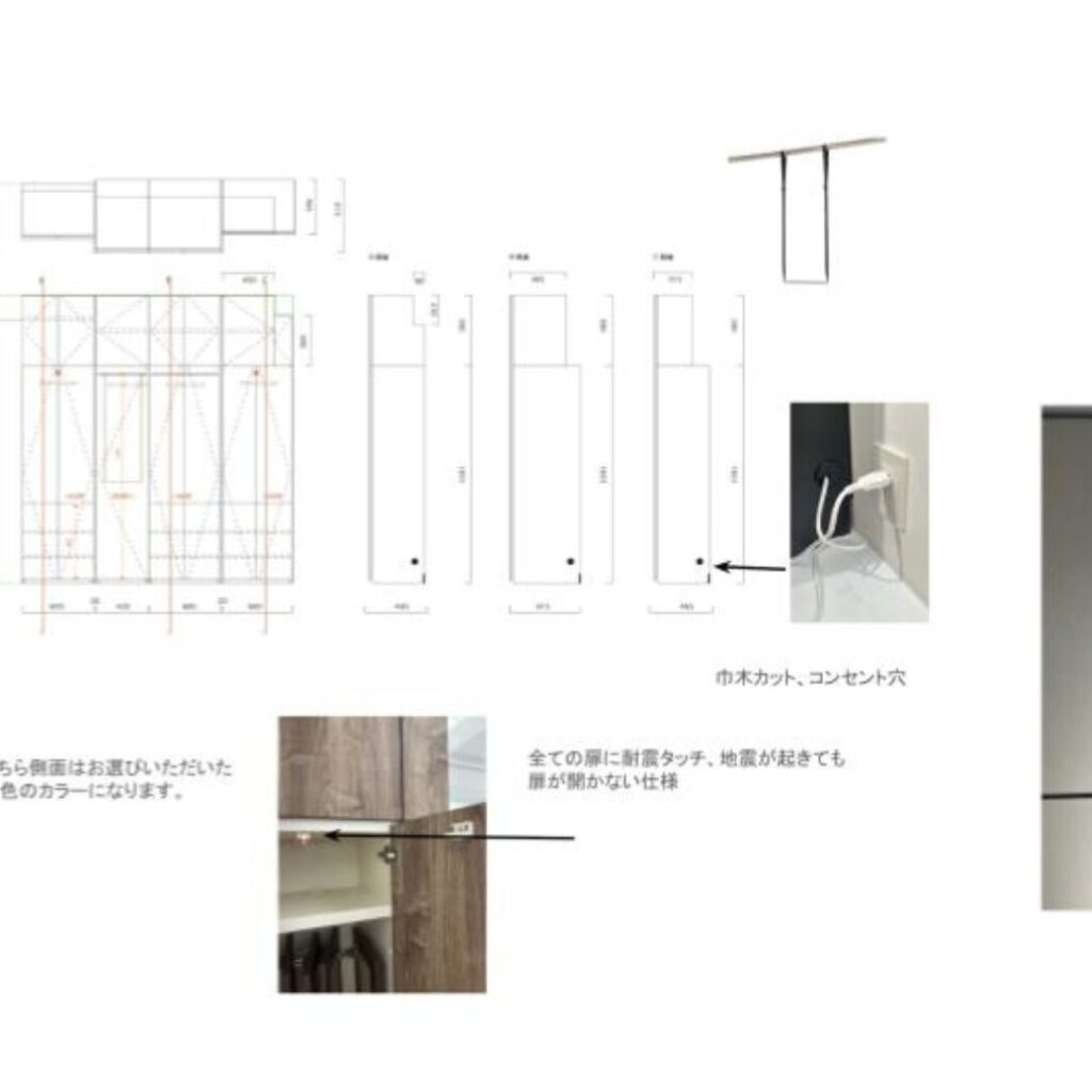 特に難しかったのは、右側のウォークインクローゼットのドアと、左側のコンセント・排気口に干渉しないように設計すること。