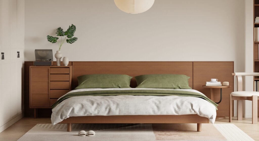 コンセント配置:テーブルサイド・ベッドサイドへの計画的配置で、延長コードが床を這うことを防ぎます。