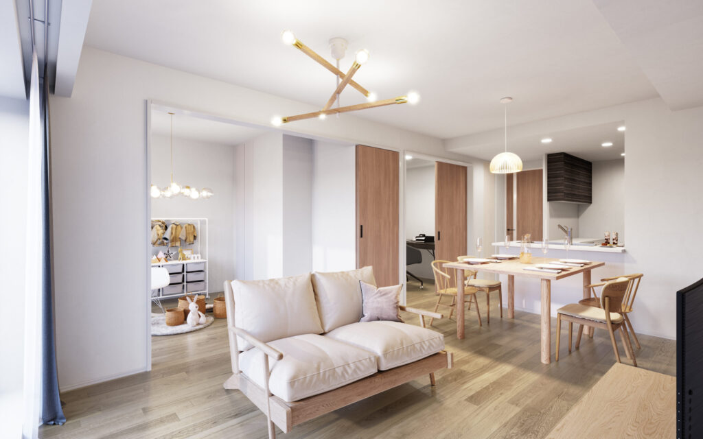 - ・照明と家具配置でゾーニングを明確にし、各部屋の用途を一目で分かるようにする