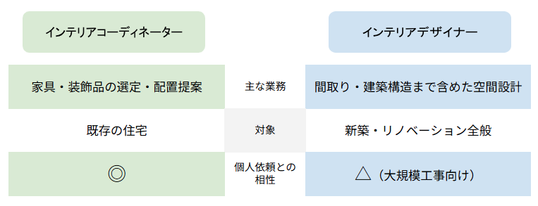 インテリアコーディネーターとインテリアデザイナーの違い